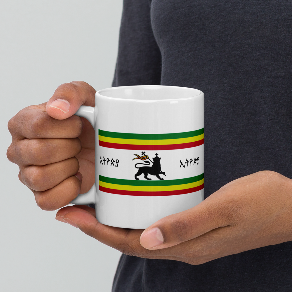 Ethiopian Flag Printed White glossy mug